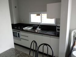 Apartamento novo e funcional com INTERNET. Possui 02 dormitórios de casal com ventilador de teto e 01 banheiro. O imóvel dispõe de cozinha planejada completa integrada a sala de estar/jantar e sacada com rede e churrasqueira. Possui área de serviço e estacionamento para 01 carro. Fica na mesma rua da Pousada Vila dos Coqueiros há 100m.