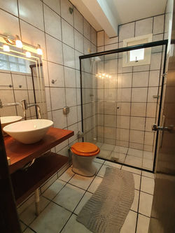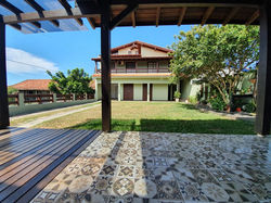Enorme residência com 04 dormitórios e 03 banheiros (01 quarto/suíte e 03 quartos com AR CONDICIONADO). Possui 02 salas amplas (jantar / Estar), cozinha completa, lavanderia. A casa dispõe de TV e INTERNET, salão de festas com churrasqueira, terreno todo cercado e gramado com estacionamento para 03 carros. Sobrado em excelente localização a um 100m do centrinho e 200m da Barra de Ibiraquera. Próximo de todos os recursos locais: mercado, padaria, farmácia e restaurantes!